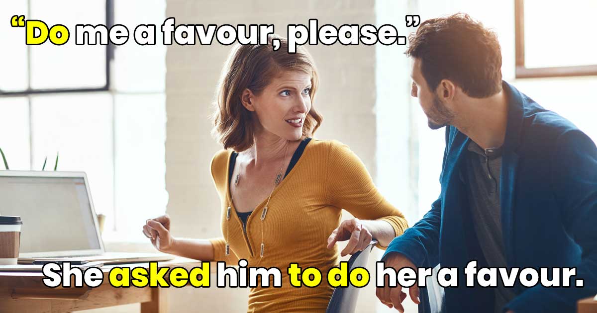 | “Do me a favour, please.” | He asked her to do him a favour. |