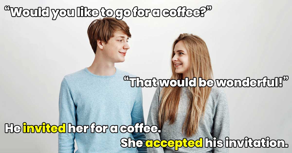 | “Eh, I was wondering if… if you would like to go for a coffee with me?” | He shyly invited her for a coffee. |