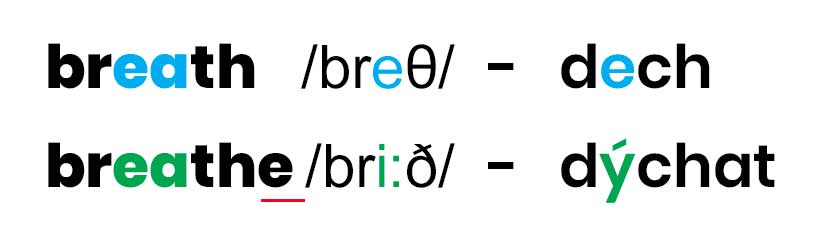 Věříme, že po přečtení článku vám tato dvojice slov již nebude dělat problémy. Pamatujte si, že sloveso ‘dýchat’ je delší, proto se píše breathe a vyslovuje se /bri:ð/. Podstatné jméno ‘dech’ je naopak kratší, píše se pouze breath a vyslovuje se /breθ/.