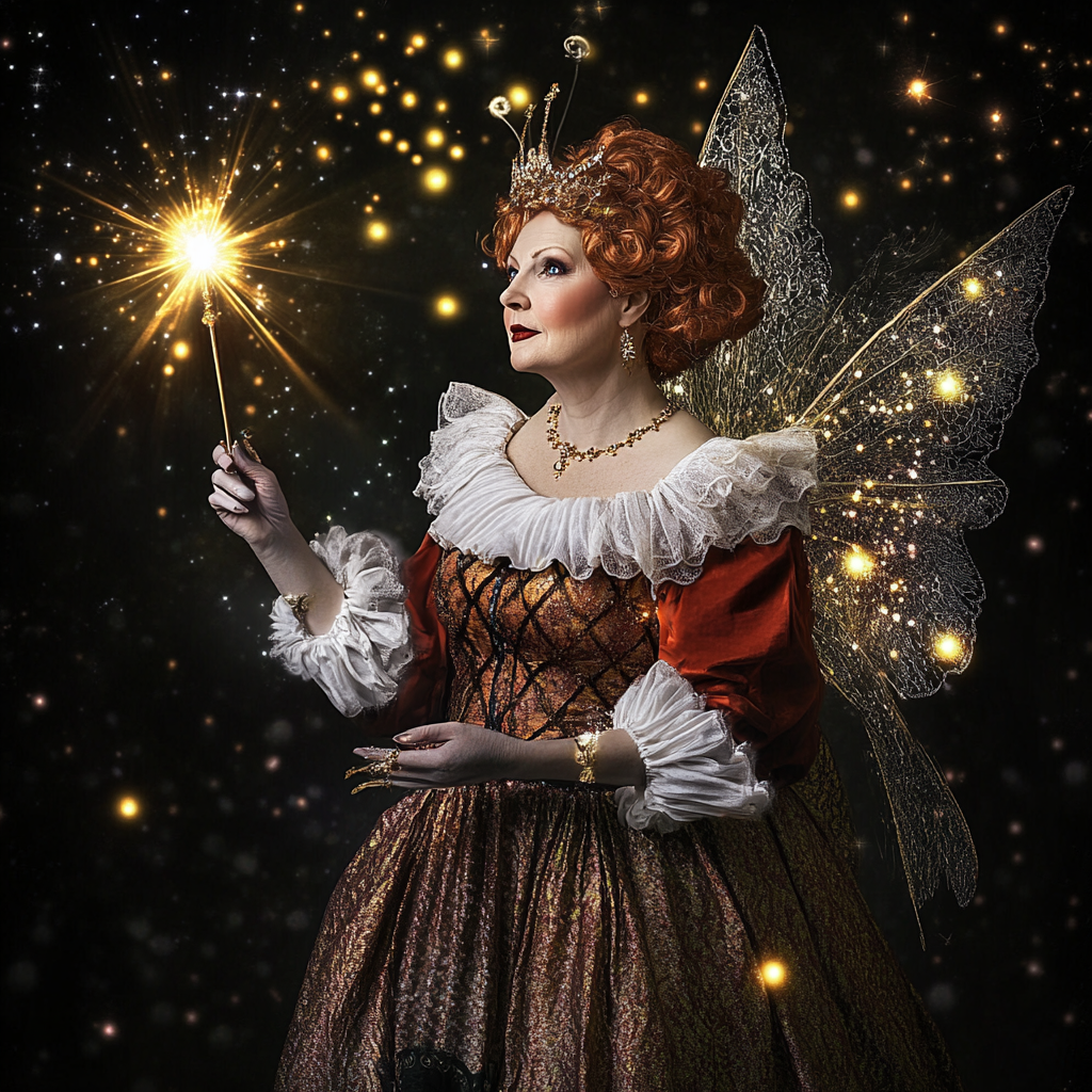 The fairy godmother waved her wand, and the pumpkin magically transformed into a splendid carriage. *25
