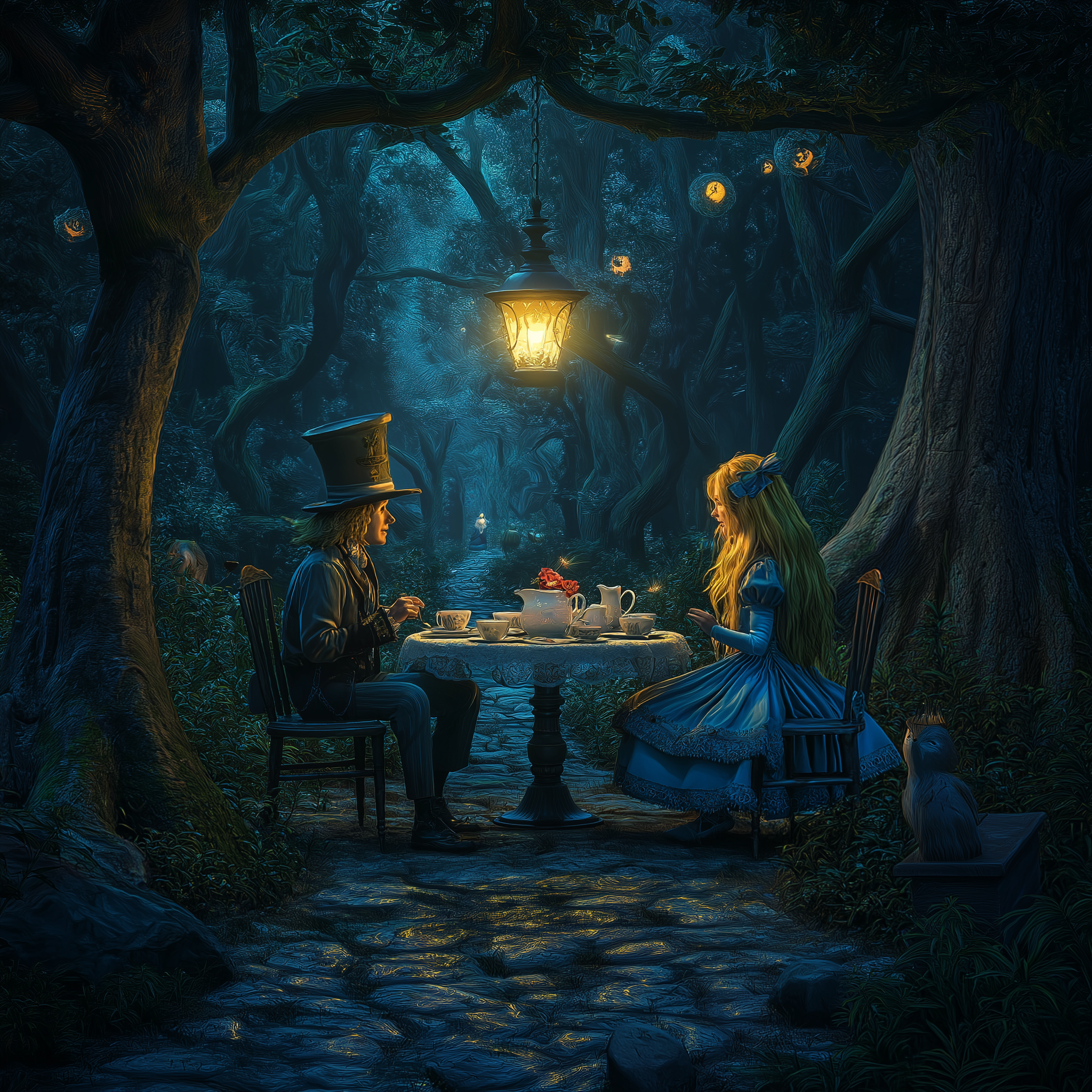 - Alice se ocitla na podivném čajovém dýchánku, kde jí Kloboučník nabídl šálek, aniž by kdy nalil čaj.