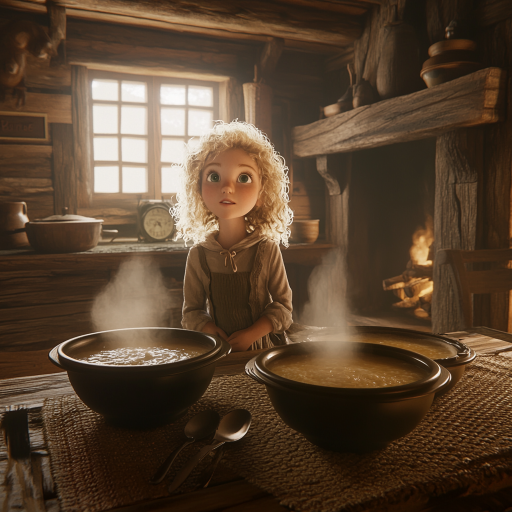 - „Tahle kaše je příliš horká!“ vykřikla poté, co si dala trochu z první misky.