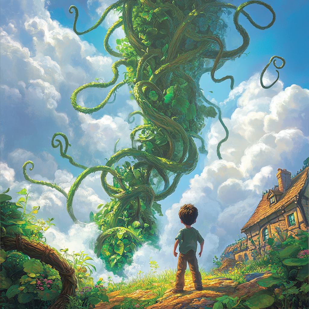 - Ráno vyrostl obrovský fazolový stonek, který se táhl až do oblak, a Honza se rozhodl po něm vyšplhat.